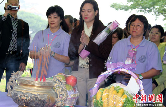 图为香港邓丽君歌迷会的会员在上香。中新网记者 董会峰 摄