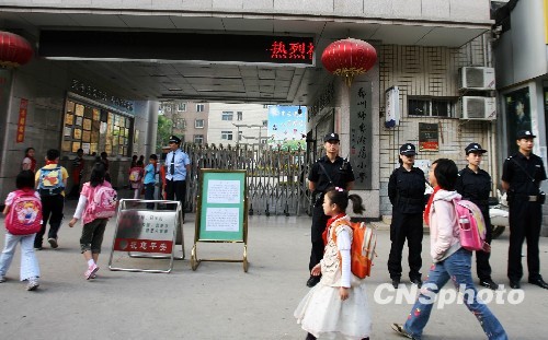 5月7日,河南郑州特警、交警、巡警等多警种在共同守护校园安全。目前,校园安保问题成为公众关注的热门话题,全国各地学校安保全面升级,郑州特警作为巡警各大队力量的补充,每日共出动警力800余人次,守护学生上下学,并对学校保安的装备进行“检查”。