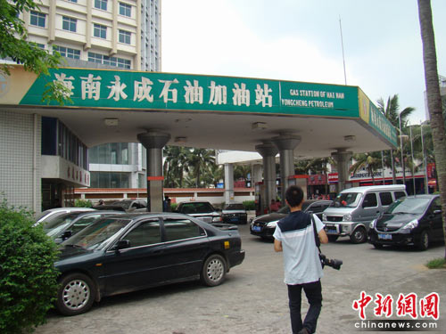 海南“问题汽油”事件发生后,部份受害车主已获现金赔偿。图为5月10日上午,陆续有近20位“问题汽油”受害车主或开车封堵海南永成加油站讨“说法”。 付美斌 摄