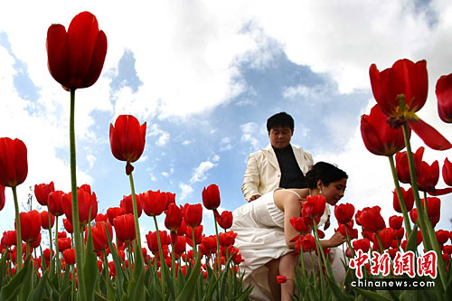 近日,随着气温逐步上升,位于北京顺义国际鲜花港的“2010北京郁金香文化节”进入盛花期,300万株郁金香竞相开放。