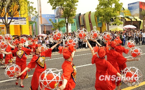 来自杭州余杭区滚灯队近20位姑娘表演了列入国家级“非遗”名录的余杭滚灯,吸引了中外游客观看。中新社发 吴元峰 摄