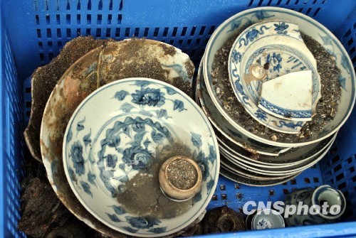 2010年5月10日,位于汕头南澳县乌屿和半潮礁之间海域的明代古沉船“南澳Ⅰ号”再有上千件文物出水。据了解,“南澳Ⅰ号”古沉船里面的文物摆放整齐,没有太多损坏。而且大部分也没有翻动过。中新社发 牟财源 摄
