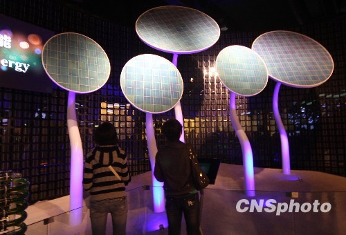 5月11日,上海世博会中国馆的“低碳行动”展区十分受欢迎,风能光热发电、零排放环保汽车、生物能源、“低碳的一天”体验区等让观众大开眼界。 中新社发 吴芒子 摄