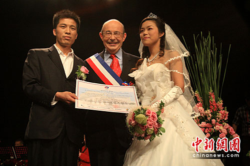 颇具特色的“法兰西浪漫图尔世博婚典”5月11日在上海世博园内上演。该节目由法国馆方面特意为中国新人量身打造。