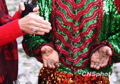 艾斯开尔·乌布力喀斯木布满油污的双手。中新社发 程全 摄