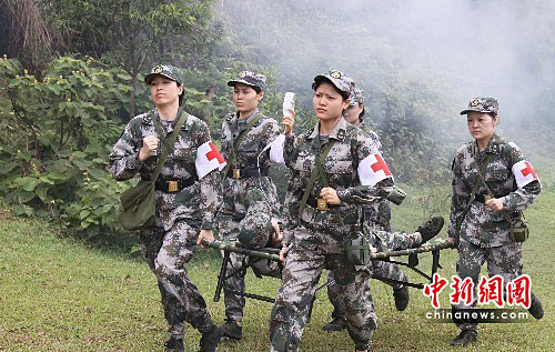 图:中国女兵野战护理演练庆祝护士节(2)