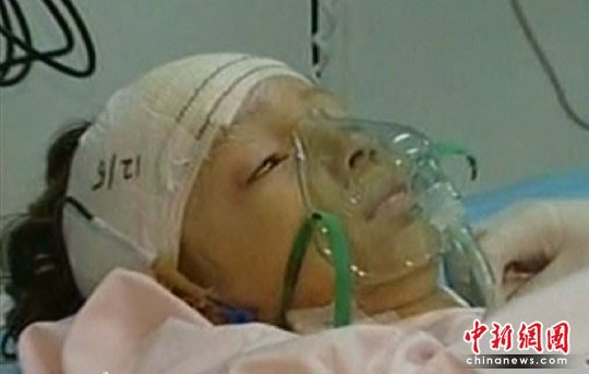 图为幸存的男童接受治疗。