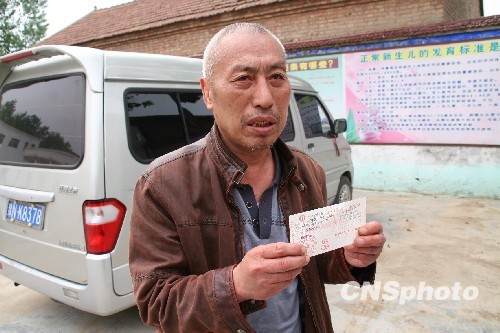经河南省高级人民法院再审判决,被宣告无罪释放的河南省柘城县老王集乡赵楼村村民赵作海收到赔偿义务机关代表--商丘市中级人民法院宋海萍院长亲手交付国家赔偿及生活困难补助共计人民币65万元。至此,因“故意杀人罪”而冤狱11年的赵作海申请国家赔偿案终结。赵作海因“故意杀人”入狱11年,今年4月“死者”现身。中新社发 王中举 摄