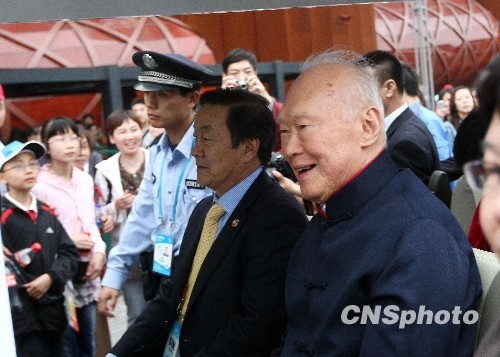李光耀参观上海世博会新加坡馆。中新社发 杜洋 摄