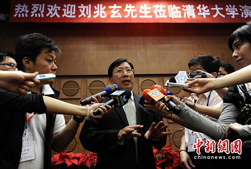 图为刘兆玄备受媒体关注。中新社发 刘震 摄