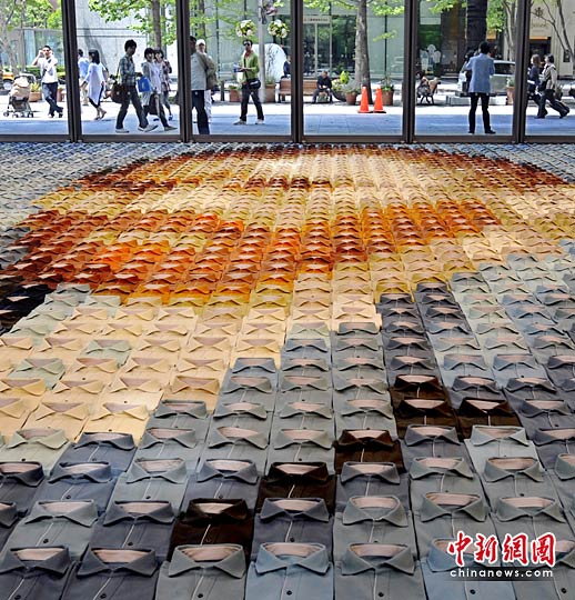 图为2070件衬衫拼成的梵高名画。