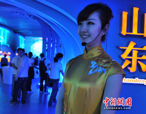 中新网上海5月17日电 5月开园的上海世博会中国省区市联合馆,让来此参观的炎黄子孙都能寻觅到大陆上各自祖籍故乡的血缘根脉。首先映入眼帘的,是家乡的礼仪迎宾姑娘,个个婷婷玉立,好像花一样。摄影:贾国荣。