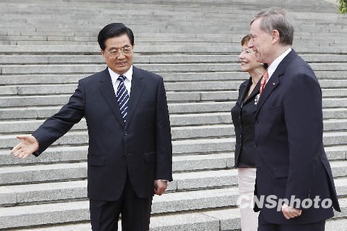 5月17日,中国国家主席胡锦涛在北京人民大会堂东门外广场举行仪式,欢迎德国总统克勒访华。中新社发 盛佳鹏 摄