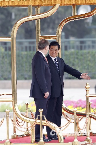 5月17日,中国国家主席胡锦涛在北京人民大会堂东门外广场举行仪式,欢迎德国总统克勒访华。中新社发 盛佳鹏 摄