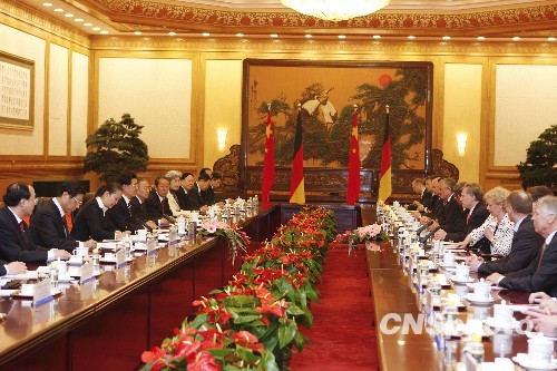 5月17日,中国国家主席胡锦涛在北京人民大会堂与来访的德国总统克勒举行会谈。中新社发 盛佳鹏 摄