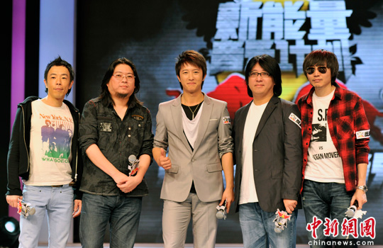 图为(左起)黄贯中、高晓松、韩庚、袁惟仁、张亚东。中新网记者 金硕 摄