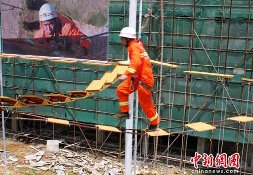 随着消防部队承担社会救助范围的不断扩大,灭火救援、抢险救灾和处置突发事件的复杂性及不可确定性因素不断增加,加强心理拓展训练,成为消防部队一项紧迫而又新型的课题。 (唐海波 摄)