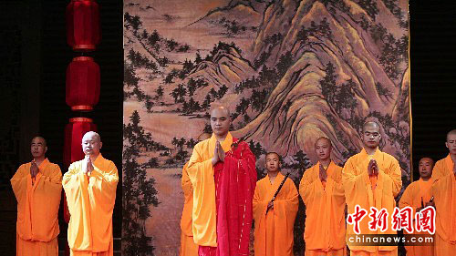 图为开幕现场僧人为世博祈福。中新社发 张云 摄
