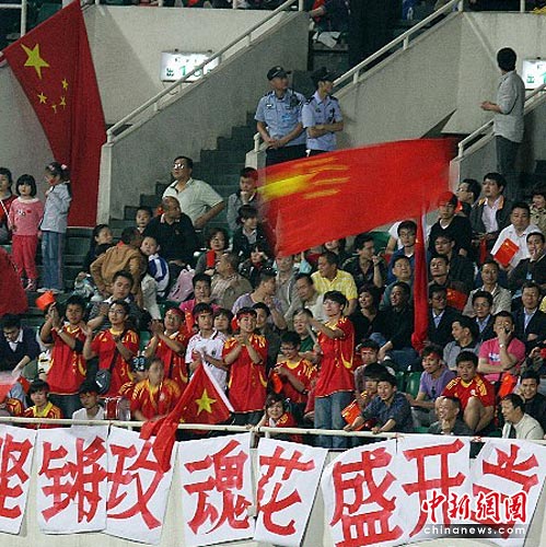 图为成都球迷现场为中国队助威加油。中新社发 刘忠俊 摄