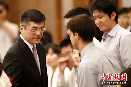 5月21日,美国商务部长骆家辉在北京清华大学发表以清洁能源为主题的演讲,并回答学生和网友提问。中新社发 盛佳鹏 摄