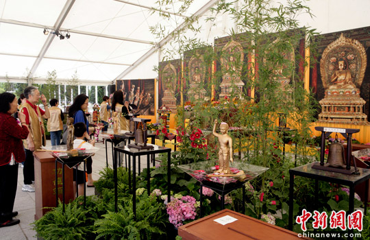 5月21日,是香港“佛诞”节,不少市民在体育馆外的浴佛区,参与香港佛教联合会主办的浴佛活动藉此纪念释迦牟尼佛诞生。
