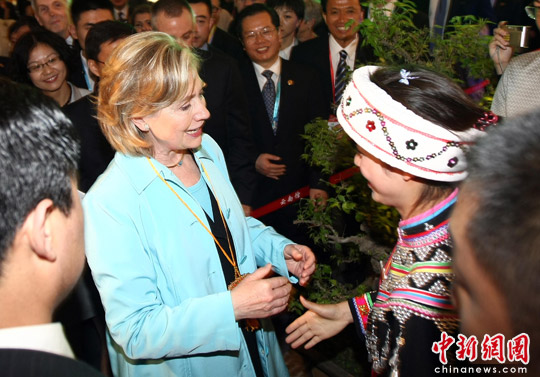 图:美国务卿希拉里与云南少数民族交流