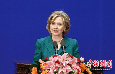 5月24日,第二轮中美战略与经济对话在北京开幕,美国总统奥巴马的特别代表、国务卿希拉里·克林顿出席开幕式并讲话。中新社发 盛佳鹏 摄