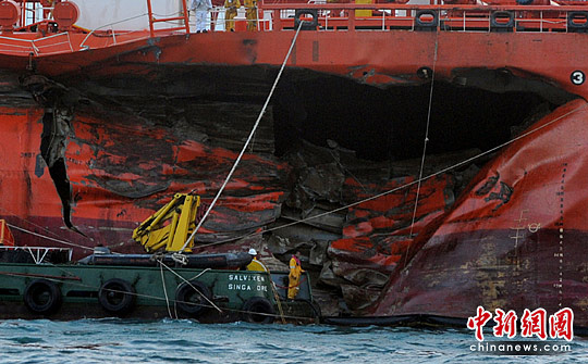 新加坡海峡附近两船相撞 2千吨原油泄漏(2)