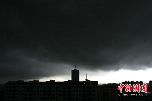 2010年5月26日下午,一场暴风雨即将来临前的海南海口天空乌云翻滚,出现“乌云压城 城欲摧”景观。