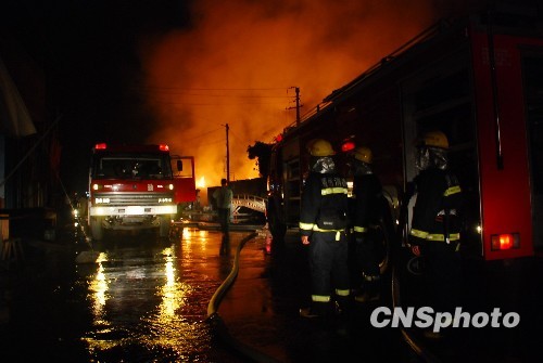 图:福州消防官兵火速扑救边角料堆场大火(2)