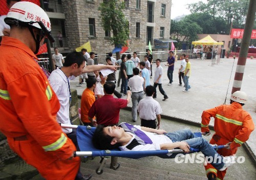 组图:重庆校园进行消防实战演习(2)