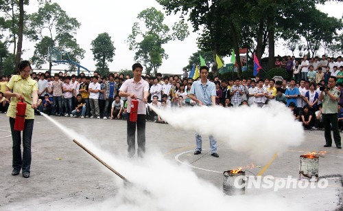 据了解,此次消防实战演习旨在普及应急知识,提高师生风险防范意识和自救、互救能力,同时也检验和提高了相关人员的临场指挥、队伍调动、应急处置技术和后勤保障等应急能力。中新社发 陈仕川 摄