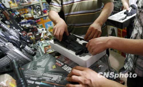 图为便衣警察在“枪市”选货。中新社发 翟羽佳 摄
