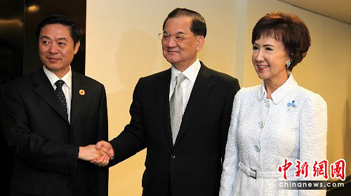 5月27日晚,中国国民党荣誉主席连战在台北101大楼会见“好朋友、老朋友”中共四川省委书记刘奇葆,交谈甚欢。