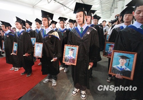 5月28日,全国惟一的木工中等职业学校——“德胜—鲁班(休宁)木工学校”举办“匠士”毕业典礼,美国、加拿大等驻沪总领事馆分别发来贺信。第6批20名来自农村贫困家庭的孩子,身穿匠士服、头顶匠士帽,从同济大学学德胜住宅研究院院长、博士生导师徐政教授手中接过“匠士学位”证书。中新社发 胡宏坤 摄