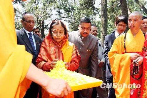 图:印度总统帕蒂尔白马寺为高僧墓献花(2)