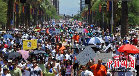 组图:美国凤凰城爆发大规模抗议游行(4)