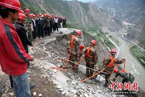 组图:四川汶川垮塌抢险紧张进行(2)