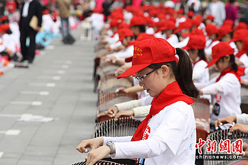 江苏盐城百名少儿泼墨挥毫“与世博同行”(6)