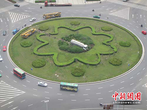 中新网泰州6月1日电(记者 周胜涛)一辆装有四五十吨煤灰的特种车辆,今天凌晨由南向北行驶至江苏省泰州市凤凰路与青年路、泰高路的交叉转盘时,一路“飞奔”,直“插”转盘花坛的中心位置后停下,所幸无人员伤亡。