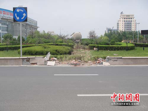 “特种车”一路“飞奔”,直“插”转盘花坛的中心位置后停下,所幸无人员伤亡。周胜涛 摄