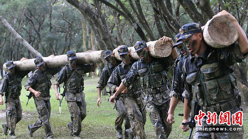 图为驻港部队猎人战斗表演。中新社发 张勤 摄