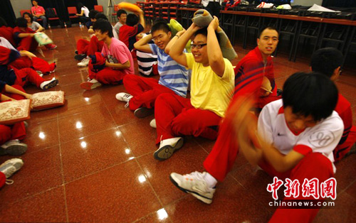 组图:高三学生考前进行减压训练(2)