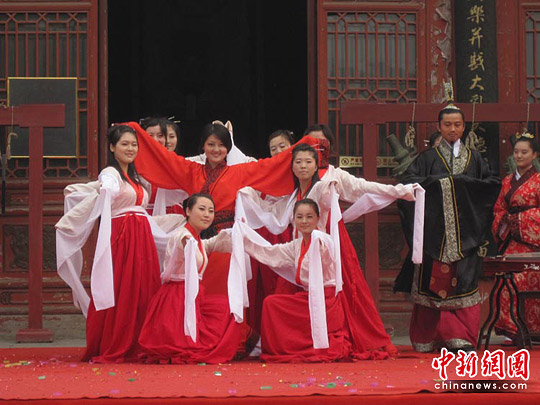 图:洛阳大学生周公庙上演“成人礼”(3)