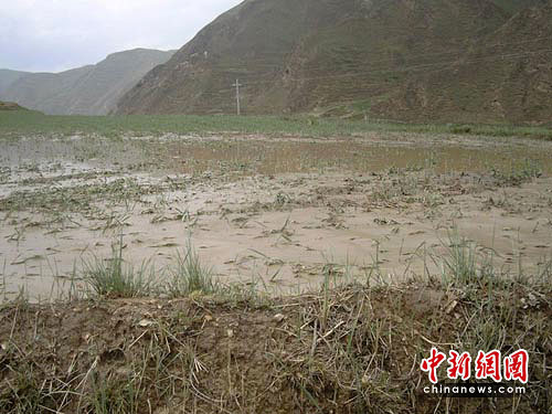 图为甘肃临潭县昨夜突降暴雨,致使当地300多亩农作物受灾。