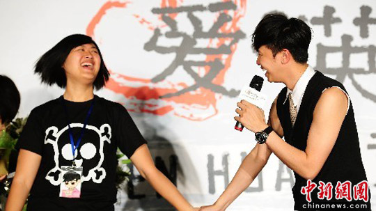 图为黄鸿升现场“大胆”牵手歌迷。中新社发 李学仕 摄