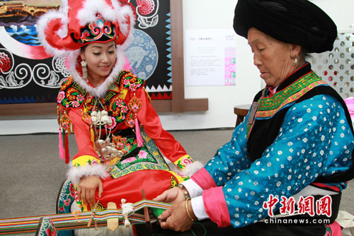 6月以来,上海世博园宝钢大舞台传承区的羌族文化表演引人关注。四川北川县在这里展示了羌族民族服饰及当地特有的绣花鞋、虎头帽、香包等绣品。同时,参观者还能欣赏到五位羌族非物质文化遗产传承人的现场表演,领略羌笛、口弦、民歌、原生态舞、古羌茶艺、古羌织锦等羌族文化精品的魅力。中新社记者 殷春永 发