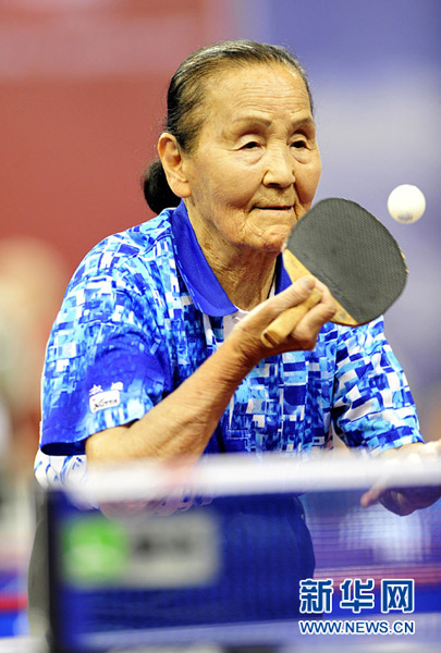 91岁的日本女选手松冈富江在比赛中。刘勇贞 摄
