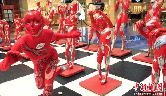 6月8日,享誉国际的美籍俄罗斯裔艺术家Leza Lidow来港举办艺术展,首度展出她于1995年入选法国健力士世界纪录的大型装置艺术——《永恒的搏弈》。中新社发 张勤 摄