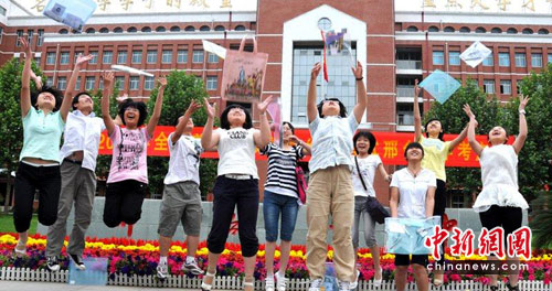2010年6月8日,河北邢台,高考结束后,考生兴奋地将书本和衣服抛向空中。黄涛 摄